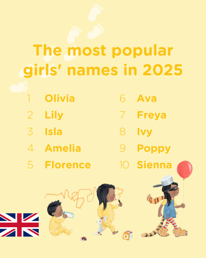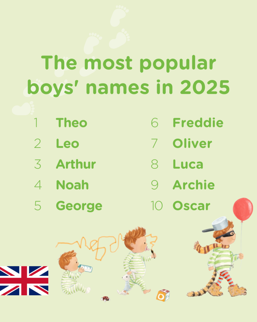 For the boys, Theo is the leader of the pack for 2025. Following him are strong, traditional names like Arthur and George – names that sound like they belong in a storybook already! Freddie and Archie bring a bit of cheeky fun to the list.