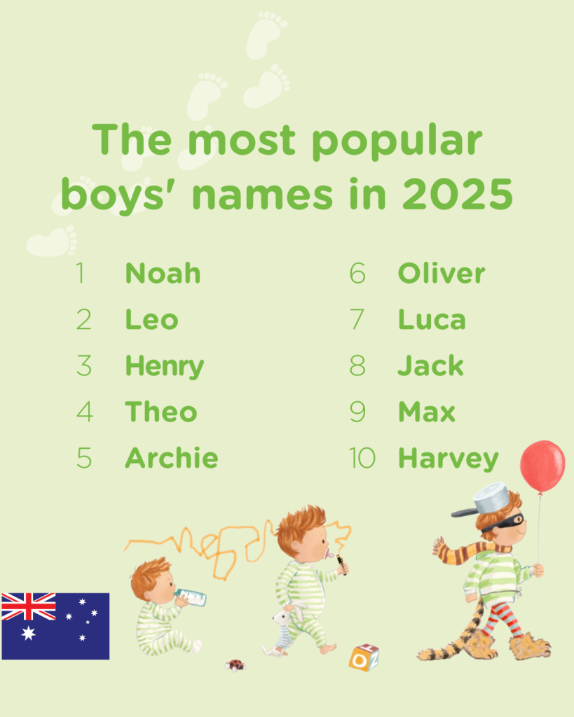 For the boys, Noah takes the gold medal. The Australian list is full of friendly, open-sounding names. Leo, Theo, Luca, and Archie are popular, but we also see Harvey and Max making a splash. It seems Australian parents love names that sound ready for an adventure.